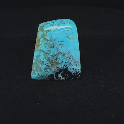 Beautiful freeform turquoise cabochon from Arizona with black magnetite inclusions.