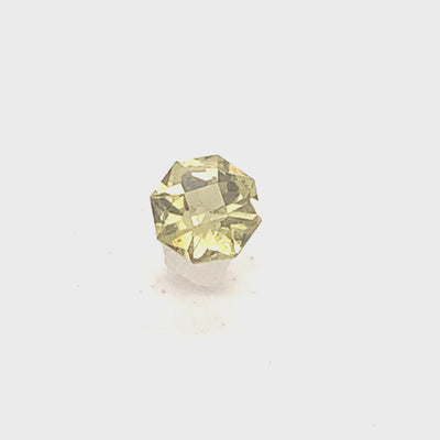 Yellow lime round garnet with intense dispersion. Typically these garnets come in small sizes but they look a lot larger because of their brilliance. I cut this in ‘cutie 1’ design which has a round octagonal shape and lots of dispersion. Great for a ring.