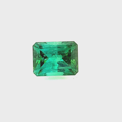 Large green emerald cut tourmaline with a uniquely cut checkerboard pattern under the stone that give a special reflective pattern throughout the table. Stone is very reflective and has tones of lighter green at the ends.