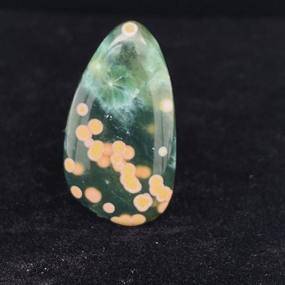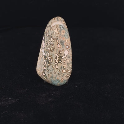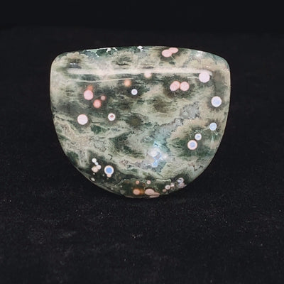 Very large highly patterned ocean Jasper with multiple orbs that looks like a pixilated piece of art. Surface is textured and great color contrast.