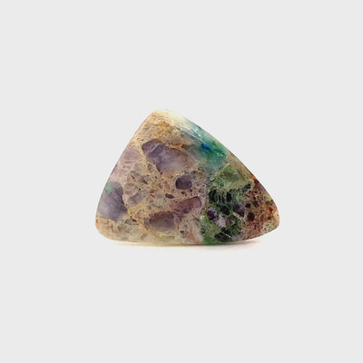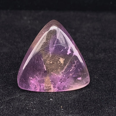 Very clean ametrine slice which has been shaped into a triangular cabochon. Contains yellow zones of citrine inter grown into amethyst.