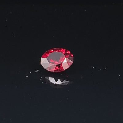 Deep red colored oval Rhodolite Garnet with lots of reflections and highlights of pink. The color saturation on this stone is exceptional.