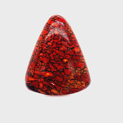 Intense colors in the classic red bone pattern except this also has yellow spots. From a collection 30 years ago….unable to get any more.