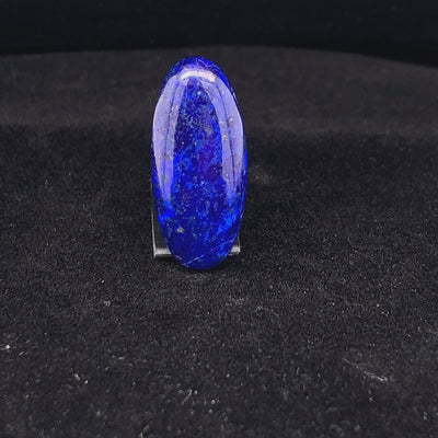 Royal blue Lapis with deep color saturation cut as an elongated oval. I cut this from the best Afghan rough and it takes a great polish. I included small inclusions of pyrite which looks like small flecks of gold throughout the stone.