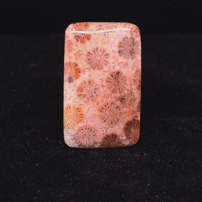 Pinkish red rectangular cabochon with the unique exoskeleton pattern of ancient corals. Very delicate and intricate patterns are really cool.