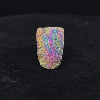 Intense iridescent Rainbow Hematite contains the full spectrum of the rainbow. Metallic sheen is very reflective with deep color saturation and the quality of this stone is rare and exceptional. Looks like a drusy stone and is Ideal for a pendant or pin.